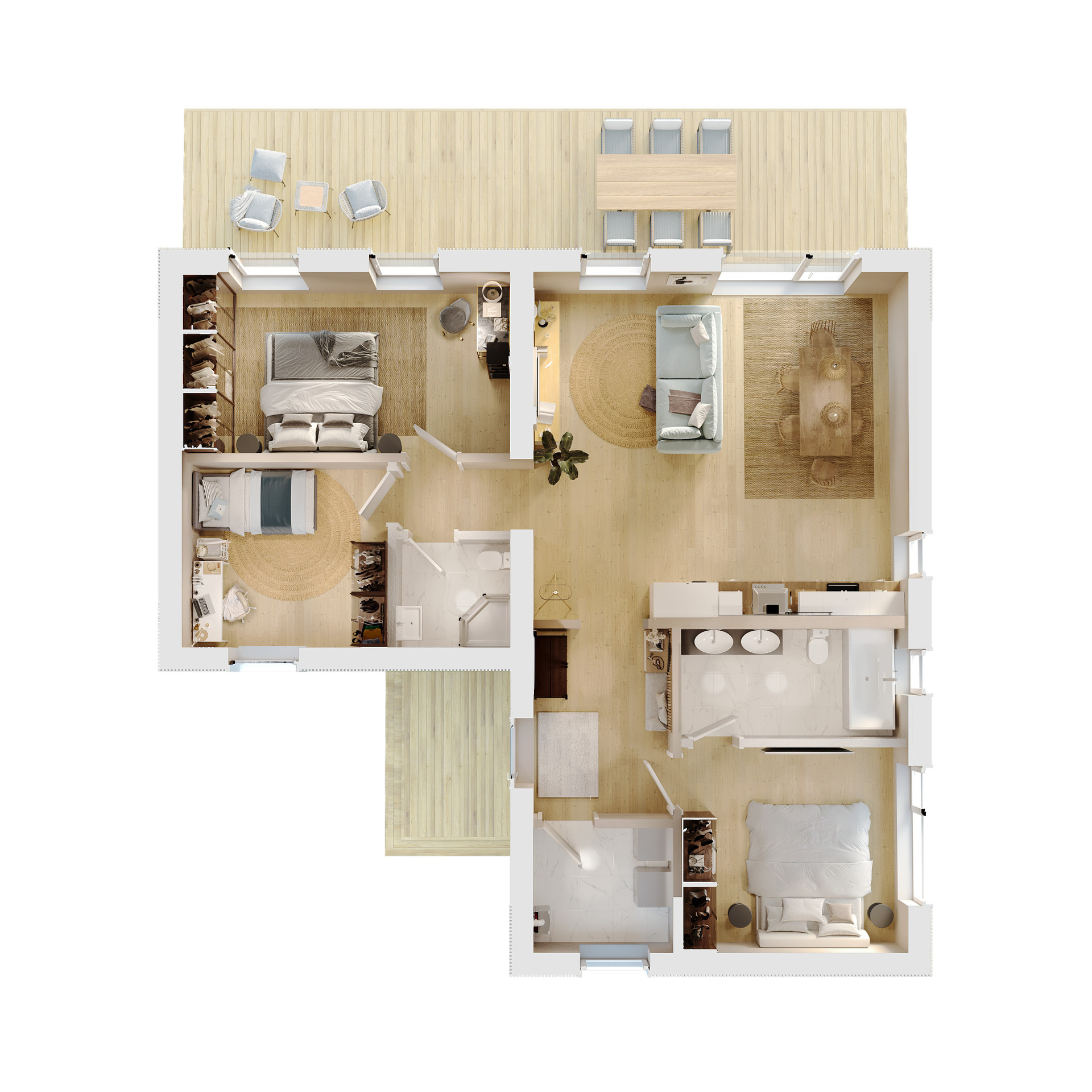 - Практичное расположение двух санузлов обеспечивает дополнительный комфорт и независимость.